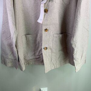 Ike Behar Men's Shirt Jacket Shacket Plus Size XXL in Khaki Linen Cotton