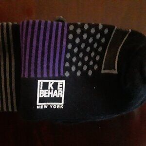 NWT Mens Ike Behar Size 10-13 Black w/Gray & Purple Dress Socks