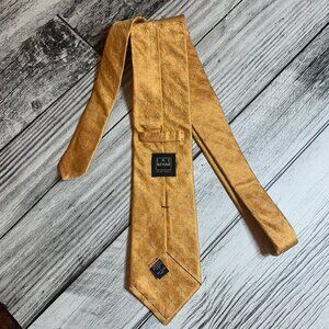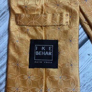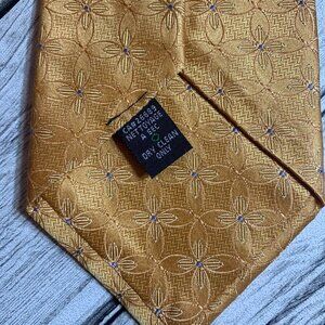Elevate your attire with the Ike Behar New York Silk Tie, a refined choice for any sophisticated wardrobe. The tie features a lustrous gold hue with a geometric floral flower print that adds a touch of elegance to your business or formal wear. Crafted from 100% silk, this tie offers a luxurious feel with a classic weave that ensures both comfort and durability. The designer tie measures a standard classic length of 57 to 60 inches and showcases a timeless width that complements a variety of shirt styles and suit combinations. It's an essential accessory for professionals seeking to make a statement of preppy charm and academic prestige, suitable for college events, weddings, travel, or abstract and money-themed occasions. Proudly made in the United States, this tie is a testament to quality craftsmanship.