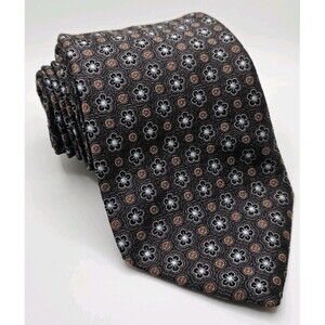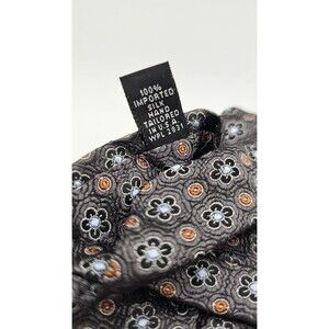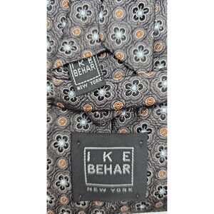 Ike Behar New York Luxury 100% Silk Tie In Grey Orange Blue Floral Pattern USA