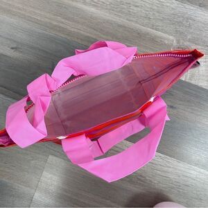 Ikea Bastua Striped Zipper Top Shopping Tote Bag Pink Red