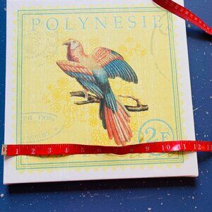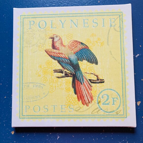 Very nice tropical Ikea wall print of vintage looking stamp with parrot and Polynesia