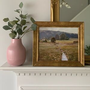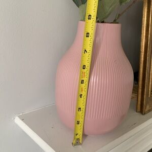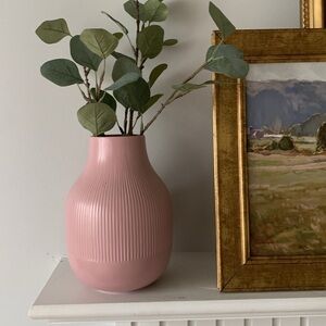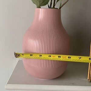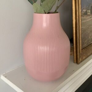 Ikea Gradvis MCM Vase 9” Tall Light Pink Glazed Ribbed Modern Stoneware