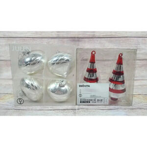 Ikea Ornaments Lot Of 2 Boxes Snovita Julen Silver Red