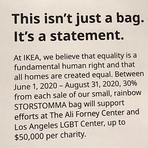 IKEA LGBTQ Limited Edition STORSTOMMA Tote Bag is a reusable shopping bag made of 100% polypropylene.