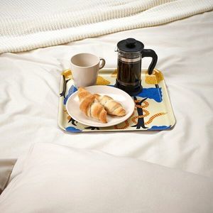Ikea Tray New Palpfjaril Serving Organizing Tray, Multicolor 12 3/4"x 12 3/4". 505.535.69 Tray, Yellow, Orange, Black and Blue. NEW. This small tray is just the right size for a cup of coffee or tea and some snacks but is also decorative to hang on a wall or lean against tiling in the kitchen. It is easy to get a good grip on the tray and carry it, as the edges are angled. Size: Length: 12 3/4", Width: 12 3/4" Square Made of High-pressure melamine laminate.