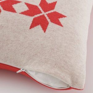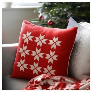 This red cushion cover with woven snowflakes is sure to be an eye-catcher. Feel free to mix and match it with other items from the VINTERFINT collection. Made of soft cotton combined with warm wool. The hidden zipper makes the cover easy to remove. Brighten up the living room for the festive season.
