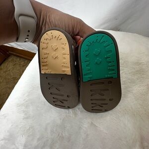 Monkey Squeaky Toddler Sandals, These whimsical brown sandals feature a playful monkey face design, perfect for adding a touch of fun to any outfit. The secure strap ensures a comfortable fit, while the contrasting sole adds a pop of color. See last picture, white patchy area, sold it.