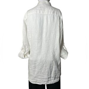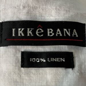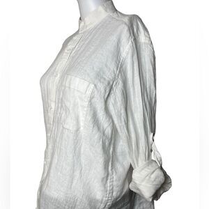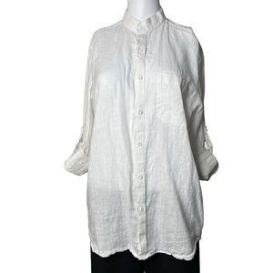 IkkeBana Linen Long Sleeve Mock Neck Button Down Shirt White Medium