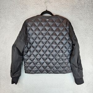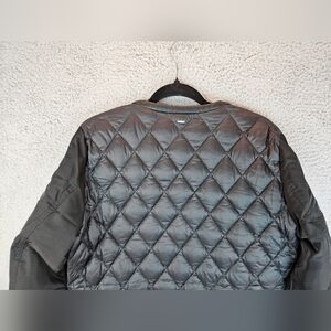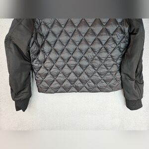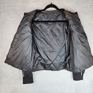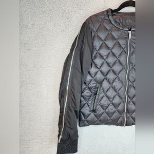 Ikks Women Moto Bomber Cropped Puffer Jacket Sz L Black Quilted Shell Rib Cuff