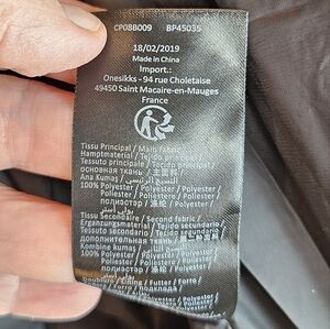 The jacket is made of high-quality softshell polyester and is lightweight, making it comfortable to wear. Its quilted pattern, long sleeves, and short jacket/coat length give it a trendy look. The jacket is pre-owned and well-maintained.