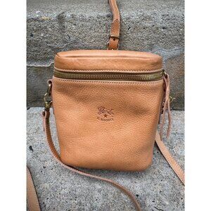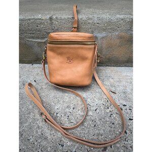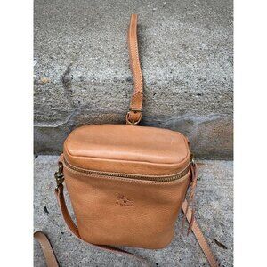 Never worn. The light brown leather exterior is complemented by a ccrossbody strap that allows it to be worn as a crossbody or backpack. With its unique design and high-quality leather, this bag is perfect for any occasion. The brand is known for its durability and attention to detail, ensuring that this bag will last for years to come. The exterior material is made of soft and supple leather, giving it a luxurious feel.