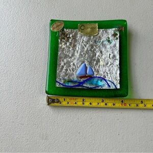Beautiful Murano glass plate with a sailboat design. Features vibrant green and blue colors. Handcrafted in Italy by Il Girasole.