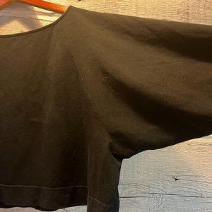 The perfect french terry cropped top with dolman sleeves and boatneck neckline. Relaxed, boxy fit. Very small (bleach?) stain on back of left sleeve.