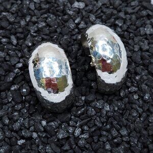 ilaria j hoops with a hammered texture. Made in sterling silver