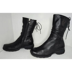 Ilasio Renzoni Black Ankle Boot Leather Shearling Fur Lining 35/5 Italy