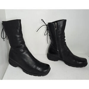 * Zipper closure, lace-up adjustment on the back