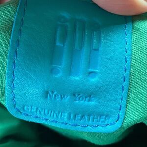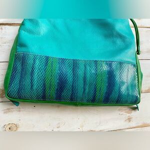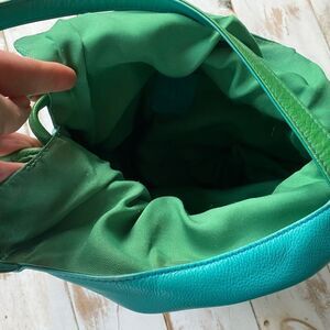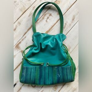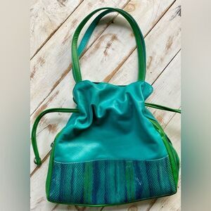 Ili New York leather Purse aqua teal blue green bucket bag hobo shoulder bag EUC