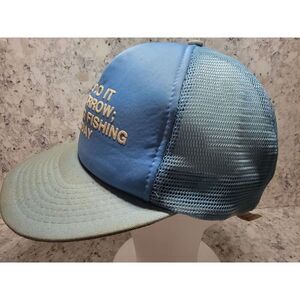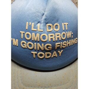 I'll Do It Tomorrow I'm Going Fishing Novelty Cap Hat Blue Vtg Trucker Cap