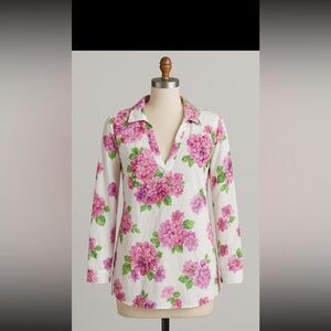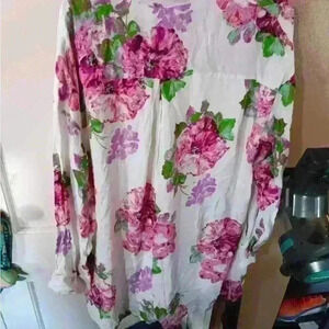 Brighten your wardrobe with this stunning floral romper from Illa, new with tags from Pretense Boutique (originally $68). This lightweight, long sleeve romper features a deep V-neckline and vibrant pink, purple, and green floral print on an off-white background. The relaxed fit makes it perfect for warm weather, vacations, brunches, or casual outings.