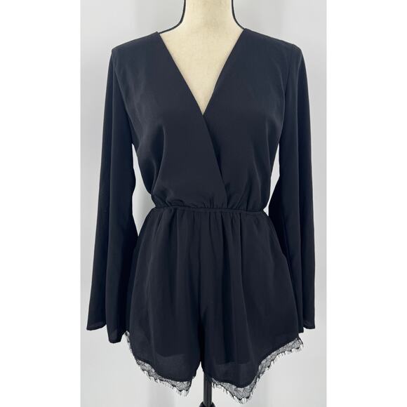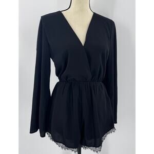 Illa Illa Black Romper Shorts Jumpsuit Long Sleeve Formal Wrap Lace Cockatail S