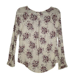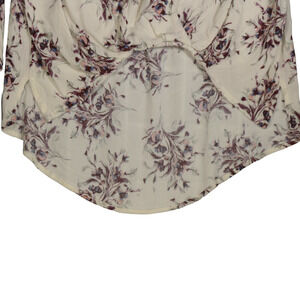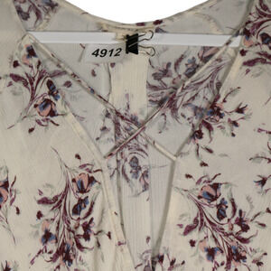 Illa Illa Blouse Womens Small Ivory Pink Floral Rolled Hem Plunge Crinkle Sheer