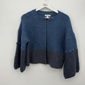 Illa Illa Blue Two Tone Chunky Knit Cropped Cardigan Sweater Size S/M