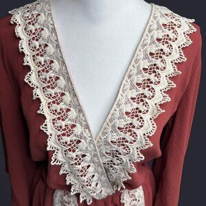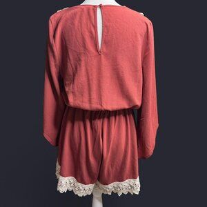 Illa Illa Coral Pink Boho Lace Romper Women’s Medium Deep V Fall Festival Outfit