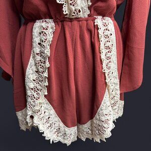 Tags: Illa Illa, Boho, Romper, Lace, Coral, Pink, Fall, Autumn, Festival, Layering, Outfit, Jumpsuit, Women, Medium, Pre Loved, Cozy, Seasonal Style