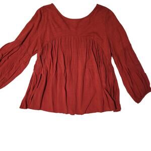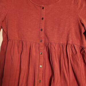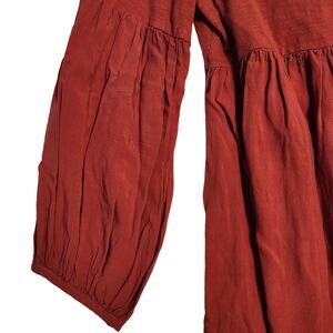 Illa Illa Cotton Long Puffed Sleeve Button Front Blouse, Terracotta, size M