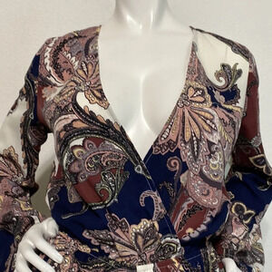Illa Illa Paisley Blue Brown Boho Long Sleeve Romper Size S