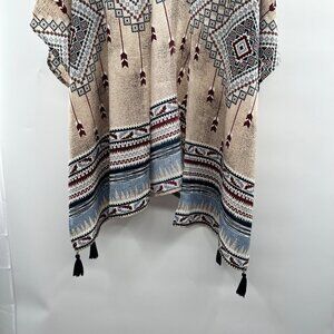 Illa Illa Women's Open Front Aztec Print Kimono Size Small Tassels