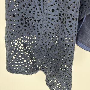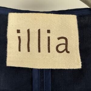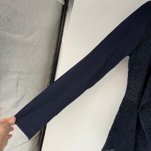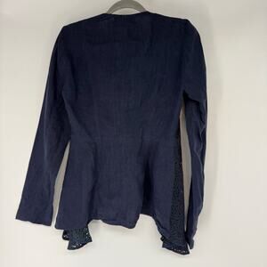 Illia Linen Laser Cut Leather Blazer Jacket Women's Size 2 Navy Open