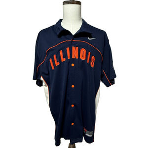 Illinois Illini Warm Up Shooting Jersey Mens Large Blue Orange Snap Shirt Nike