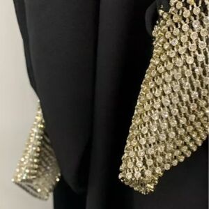 Sheer overlay with rhinestones around neck and sleeves, comfy and flowy.