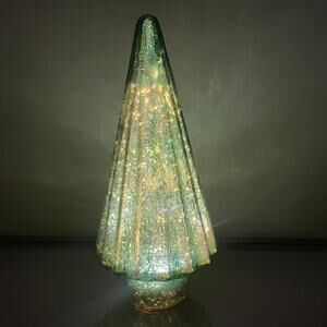 Illuminated Glass Christmas Tree 14.5in Iridescent GREEN Chic Holiday Decor New