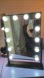 Enhance your makeup routine with this illuminated mirror featuring a sleek black frame. Perfect for precise application and a professional finish. It weighs 17 pounds after being boxed up. It measures 14.5 in wide by 17.5 in tall.