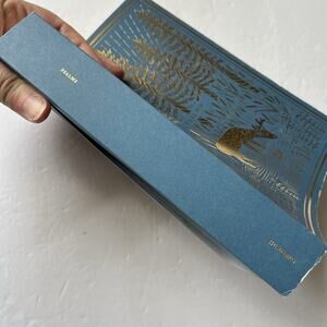Paperback Journal embellished with gold and dark teal image of a deer in the woods