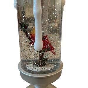 Illuminated Silver Glitter Pedestal Candle 13in Christmas Cardinal New