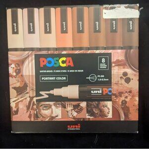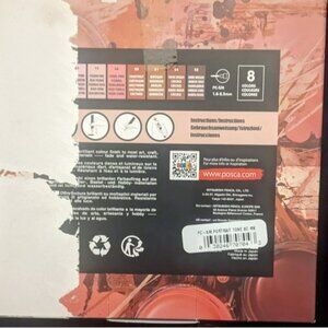The POSCA box set is brand new, never used. The back side of the box has a tear as shown in the pic. The box is still fully functional though, it's just the top layer with the artwork that's missing. msrp $30