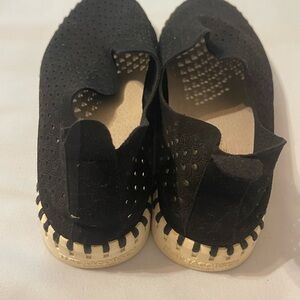 Stylish footwear with a perforated design. Black upper with cream detailing. Ideal for everyday comfort.