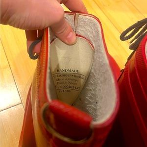 Red rubber rain boots from Danish designer Ilse Jacobsen Hornbæk. These boots are indestructible! I’ve had them for years and they’re still in great condition. Warm, wool-lined and waterproof with high shaft keeps the rain and slush away. Women’s size 37 (US 7-7.5).