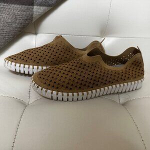 Ilse Jacobsen Tulip 139 Slip On Sneakers Tan Cutout Perforated EUC 10