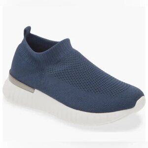 Stylish navy blue slip-on sneakers with a white sole. Perfect for casual wear.