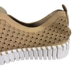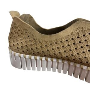 Ilse Jacobsen Tulip Latte Beige Platform Suede Perforated Slip On Shoes 37 6.5 7