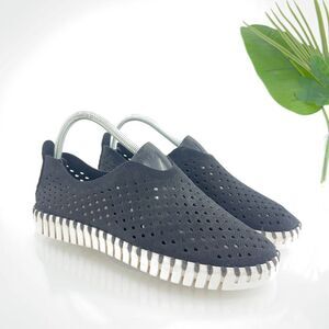 Ilse of Jacobsen Tulip Slip On Shoes Women's 38 8 Black White Flat Loafers Comfy