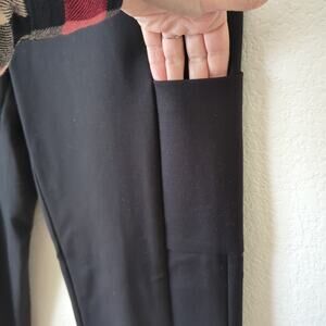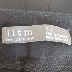 iltm I love Tyler Madison's size small made in Canada pants viscose nylon elastane black has side pockets tapered leg stretch heavy knit almost ponte inseam 27 rise 10 flat waistband 14" In excellent condition! has pockets