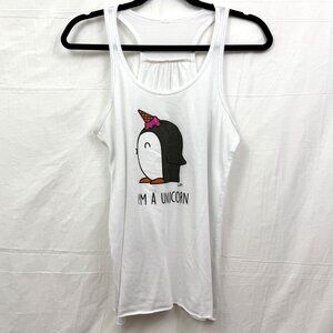 I'm A Unicorn Penguin with Ice Cream Cone Racerback Tank Women XL White