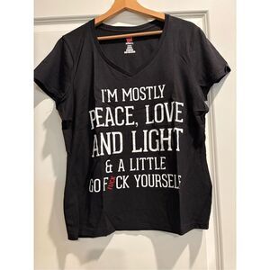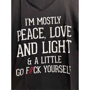 I'm Mostly Peace, Love and Light V-neck Women's T-shirt size Large