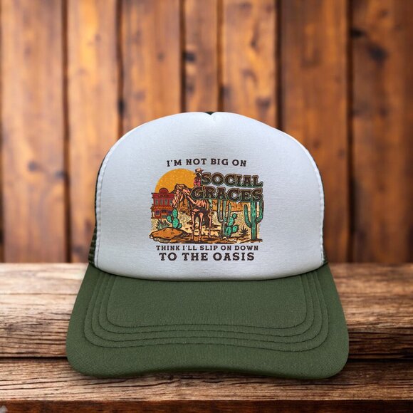 I'm Not Big On Social Graces Lyrics Unisex Trucker Hat Olive Country Music Gift